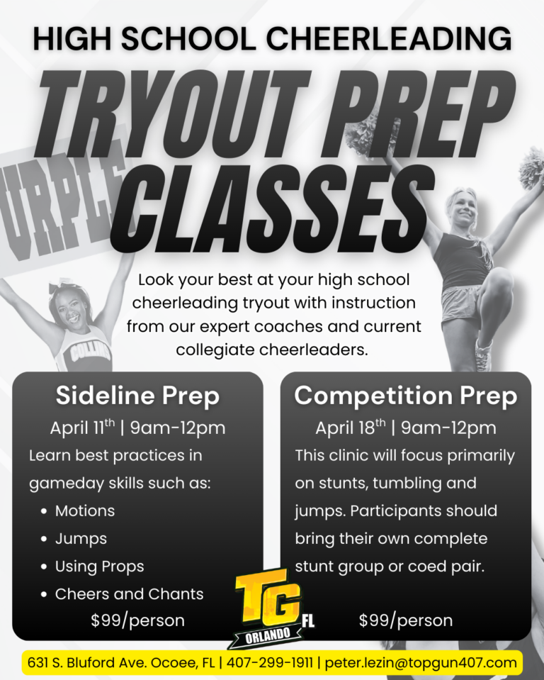 Take your middle or high school team to the next level with help from our experienced, knowledgeable, and certified cheerleading and tumbling staff.